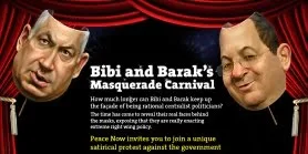 Cartoon in Haaretz. Netanyahu aan Mossad chef Meir Dagan: Allemaal hebben ze dezelfde bril? Antwoord: Dit werd gesponsord door Optikana.