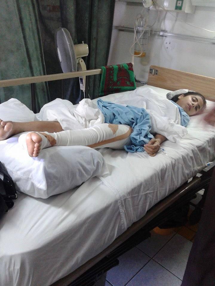 Sanabel Attous zoals ze woensdag werd gefotografeerd in het ziekenhuis